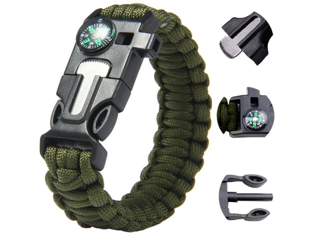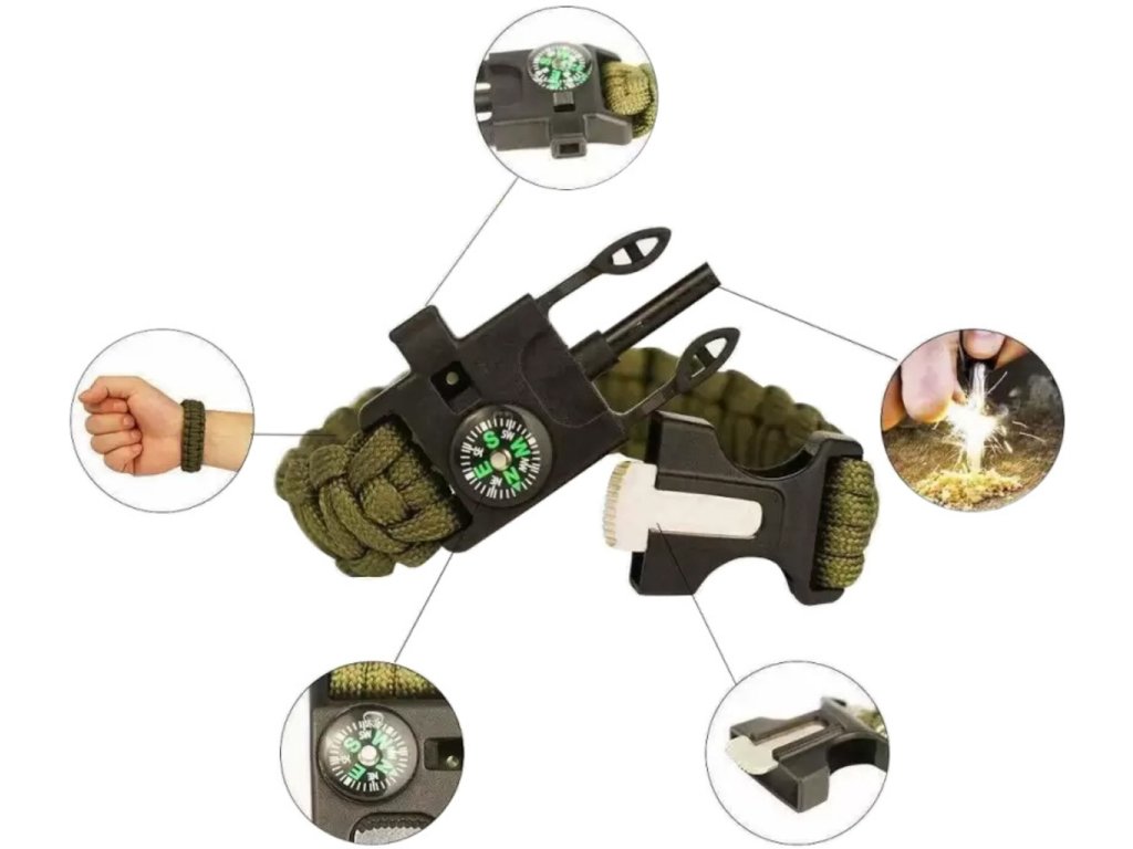 Objevte dokonalou kombinaci funkčnosti a stylu s naším náramkem přežití Paracord 5 v 1, který je nepostradatelným společníkem pro každé dobrodružství. Ať už jste na túře, kempování nebo v lese, tento náramek zvyšuje vaše šance na přežití díky své všestrannosti a praktickým funkcím. Vyroben z odolného materiálu, náramek obsahuje vše, co potřebujete: pevnou šňůrku, čepel, kompas, píšťalku a podpalovač. Zapínání na bezpečnou sponu zajišťuje, že je vždy připraven k použití. Kompas vás vždy nasměruje na správnou cestu, zatímco integrovaná podpalovač s čepelí pomáhá rychle a snadno rozdělat oheň pomocí jisker. Vodotěsné provedení umožňuje nošení za každého počasí, zatímco jeho lehký design vás nikdy nezatíží. Představuje nejen praktický nástroj, ale i stylový doplněk, který lze nosit přímo na zápěstí. Připravte se na každou výzvu s tímto všestranným náramkem.