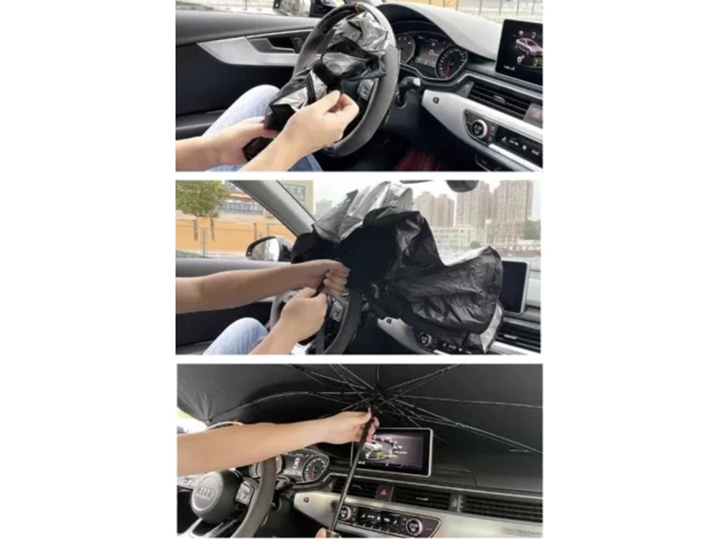 Většina lidí jezdí autem každý den, a proto lidé hledají různé autodoplňky, které jim pomohou postarat se o jejich auta. Extrémně jednoduchý a snadno použitelný design vám umožní okamžitě ochránit váš vůz před přehřátím. Sluneční clona se jednoduše rozloží jako deštník a umístí se doprostřed vozu tak, aby přilnul k čelnímu sklu. A speciální reflexní vrstva chrání interiér vozu. Paprsky nebudou dopadat na černé prvky interiéru vozu, a tak zůstanou chladné a příjemné. A když se kryt nepoužívá, lze jej rychle a snadno složit jako deštník a poté uložit do přiloženého krytu. To značně usnadní skladování produktu, protože zabere méně místa. Díky svým rozměrům - 78 cm x 130 cm - se deštník perfektně vejde do všech osobních automobilů, i těch větších. Každý prvek deštníku byl vyroben s náležitou péčí a s použitím vysoce kvalitních materiálů. Kvalita deštníku vaše zákazníky jistě uspokojí.