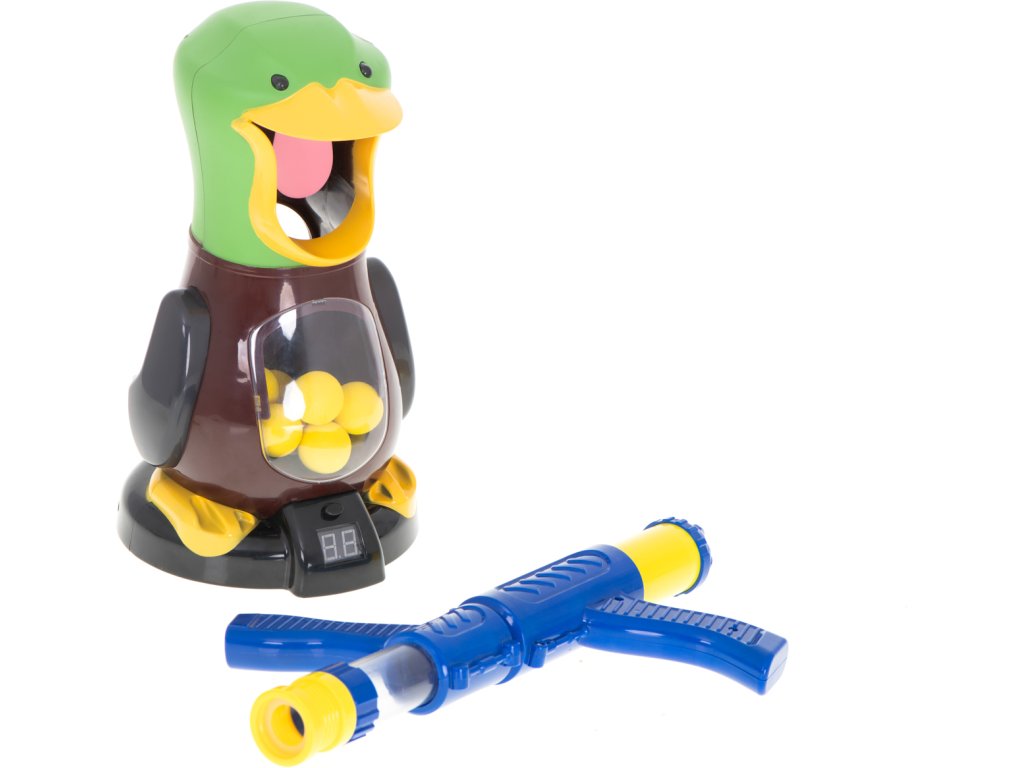 Vyzkoušejte svou přesnost! Tato sada je fantastickým dárkem pro každého nadšence zbraní. Všichni příznivci střelby na terč si ji jistě zamilují. Zbraň je poháněna vzduchem (prostě zatáhněte za pažbu směrem k sobě, abyste nasáli vzduch, a poté ji vysuňte ke střelbě). Náboje jsou pěnové, takže jsou lehké, měkké a především bezpečné. Když kulka zasáhne jazyk kachny, hračka vydá charakteristický zvuk. LCD obrazovka automaticky počítá všechny zasažené cíle. Zasáhnout cíl vyžaduje velkou koncentraci, díky které dítě získává dovednosti koordinace ruka-oko a koncentrace. Naše děti mohou pořádat střelecké závody, díky kterým se pomocí soutěže naučí prohrávat i vyhrávat. Můžete hrát ve dvojicích - nastavením pravidel, ve kterých vyhrává tým, který zaznamená nejvíce zásahů v co nejkratším čase. Můžeme také nastavit pravidla, která dvojice získá lepší skóre při použití nejmenšího počtu projektilů – vyhrává. Navíc v těchto situacích, kdy mezi dětmi dojde ke konfliktům, které je třeba zmírnit, se děti naučí, jak spory řešit.