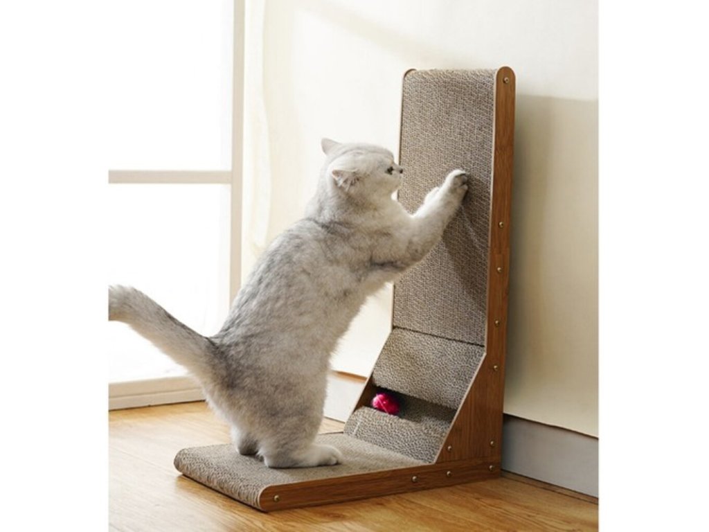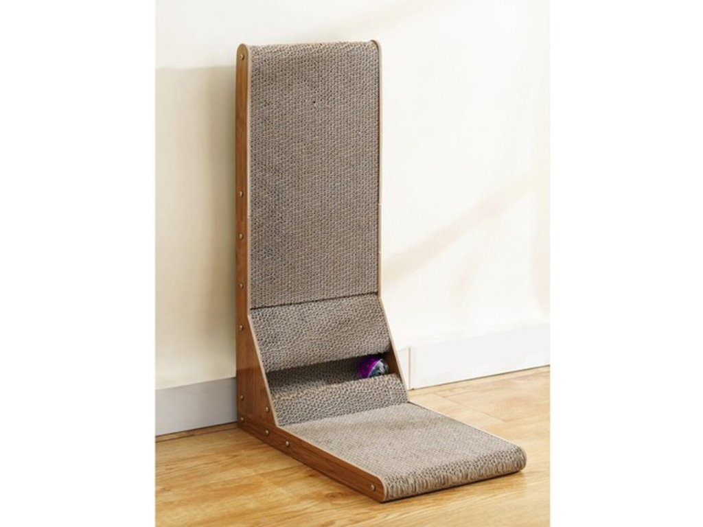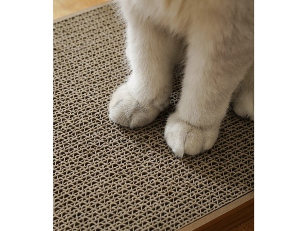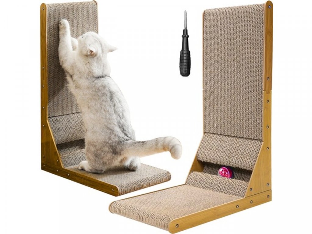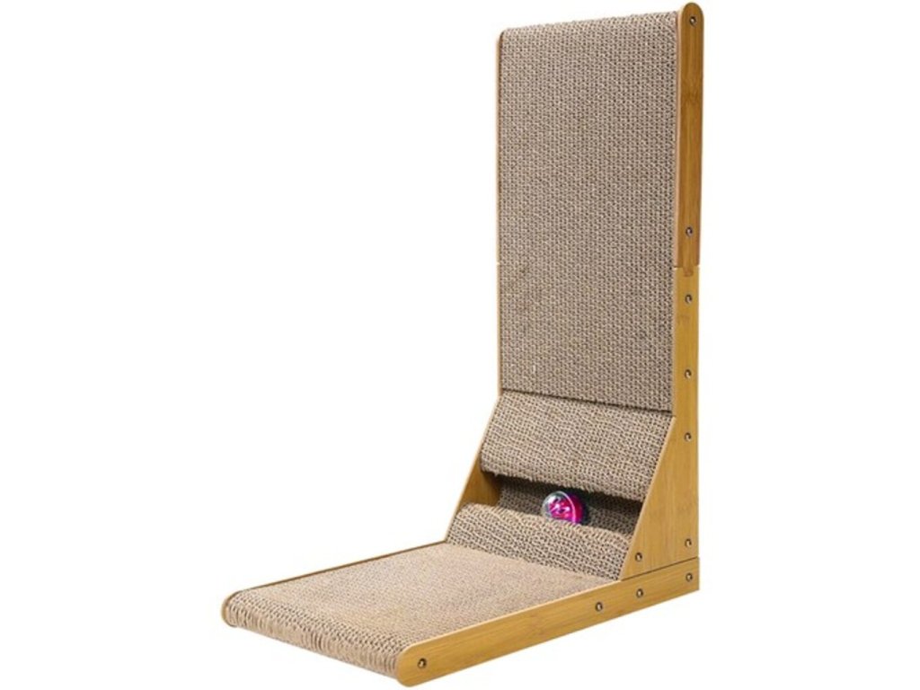 Škrabací podložka je vyrobena ze svislého a vodorovného škrabadla, které jí dodává rohový tvar. Kotě na něm může ležet, škrábat a hrát si. Škrabadlo je opatřeno tunelem s míčkem na hraní. Toto vysoce kvalitní škrabadlo pro kočky poskytne vašemu mazlíčkovi dlouhé chvíle relaxace a zároveň uspokojí každodenní potřeby škrábání a broušení drápků. Škrabadlo pro kočky je vyrobeno z kartonu a po stranách potaženo MDF rámem pro pevnost. Takové škrabadlo je perfektním důvodem k tomu, abyste pohovku nebo dveře v bytě nechali na pokoji. Na odolné škrabadlo bylo přidáno stimulační a relaxační škrabadlo, které zvíře navíc přitahuje a zároveň ho povzbuzuje k používání škrabadla. V tunelu je instalována kulička, kterou se po ní kotě může válet.