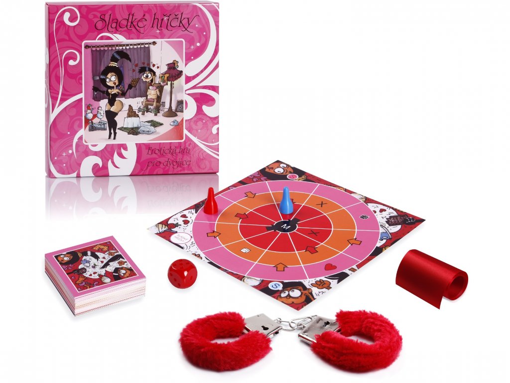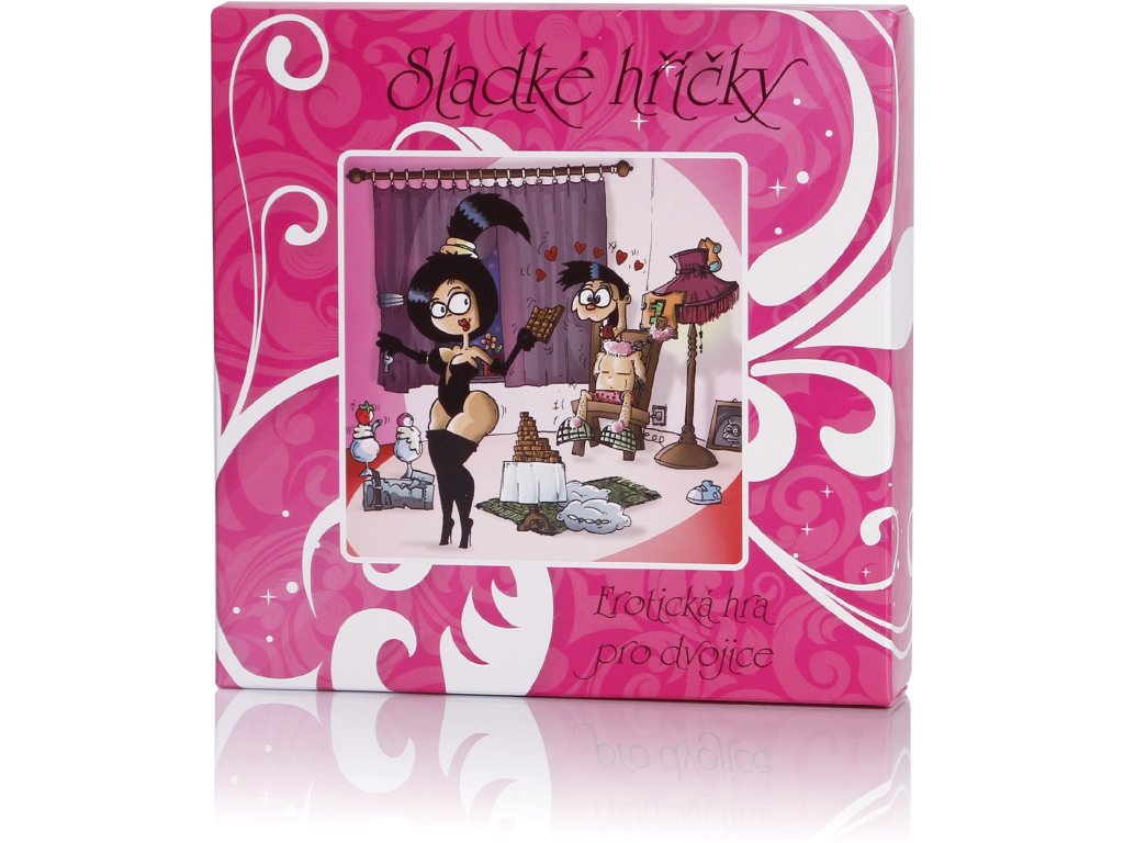 Okořeňte své milostné hrátky v ložnici a kupte si tuto jedinečnou erotickou hru pro dospělé, Sladké hříčky. K dispozici máte hrací plán, figurky a kostky a v neposlední řadě také erotické pomůcky. Zahrajte si se svou láskou tuto erotickou hru a poznáte nové zkušenosti. Můžete si se svou láskou pohrát a připravit jí pomocí erotických hraček nezapomenutelné zážitky. Erotická hra pro dospělé - Sladké hříčky je originální dárek pro zamilované.