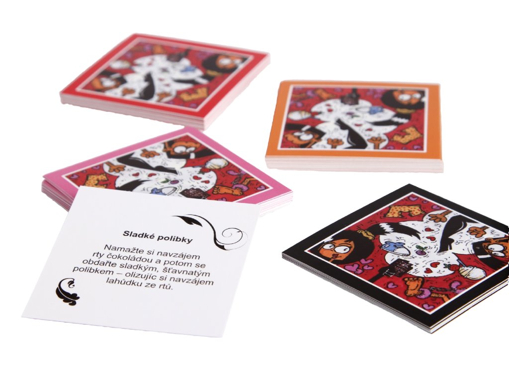 Krásná stužka, obyčejná pouta s červeným peříčkem, dobrý dárek, ale na obrázku hra vypadala větší než ve skutečnosti je a kartičky jsou menší, ale zase se vejdou do ruky.