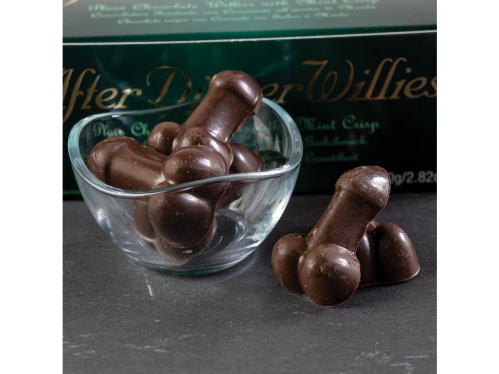 Vaše kamarádka slaví narozeniny a Vy byste jí rádi překvapili něčím netradičním, co ji vyvede z míry. Ideálním dárkem pro každou ženu je tato bonboniéra čokoládové penisy. Lahodné čokoládové bonbóny mají tvar pánských penisů, takže chutnají dvojnásobně skvěle. Každá žena jistě někdy snila o čokoládovém penisu, který by mohla mlsat. Překvapte svou kamarádku nebo sestru a udělejte jí radost touto erotickou bonboniérou. Bonboniéra čokoládové penisy je originální dárek pro ženy.