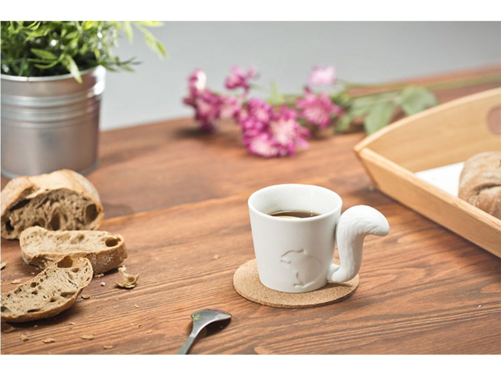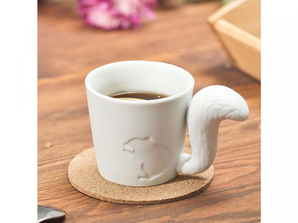 Máte v rodině někoho, kdo má rád zvířátka a rád si vychutnává teplé nápoje? Pořiďte mu tento originální porcelánový hrneček s ocáskem - veverka. Porcelánový hrneček s ocáskem - veverka má místo klasického ouška ocásek veverky. Na hrnečku je vyhotovena veverka. Porcelánový hrneček je bílé barvy. Pořiďte tento hrneček na narozeniny a udělejte radost obdarované osobě.