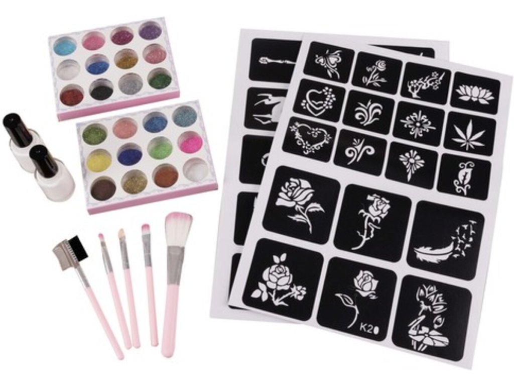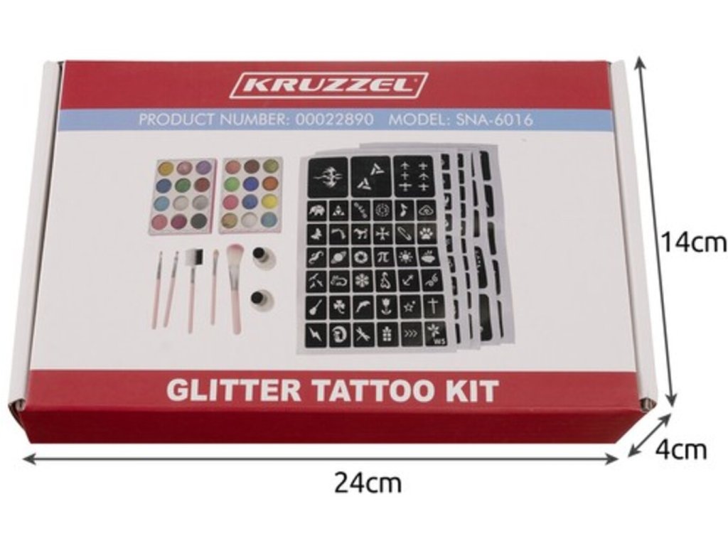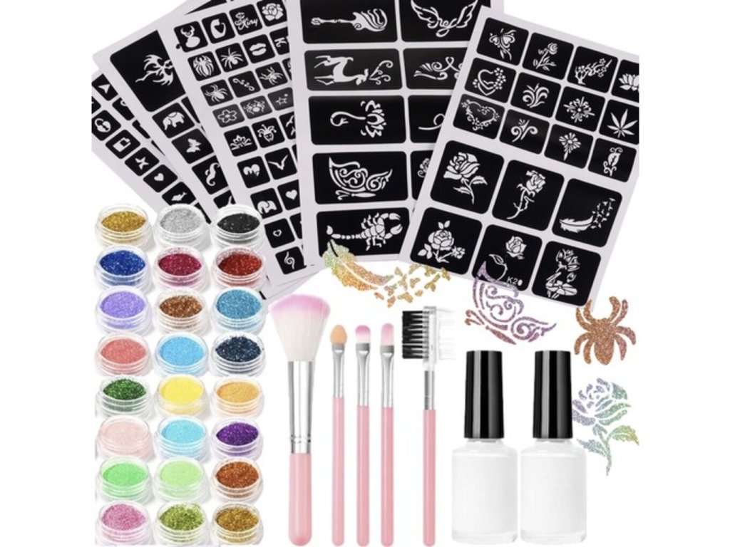 Oslněte svět svým jedinečným stylem s naší skvělou sadou tetování! Barevné třpytky poskytují ohromující efekt, který si zamilujete. Na výběr je ze 24 různých barev a až 187 tetovacích vzorů, které oslní jak děti, tak dospělé. Naše tetování se snadno aplikuje a odstraní, aniž by poškodilo vaši pokožku. Skvělý doplněk pro večírky, párty nebo kreativní hry! Všechny naše produkty jsou vyrobeny z bezpečných, netoxických a nealergických materiálů a jsou vhodné pro použití na těle, tváři, pažích i na nehty. Třpytivé tetování je voděodolné a vydrží 3 až 7 dní, takže můžete bez obav skloubit svůj jedinečný styl s našimi fantastickými tetováními! Objednejte si svou sadu ještě dnes!