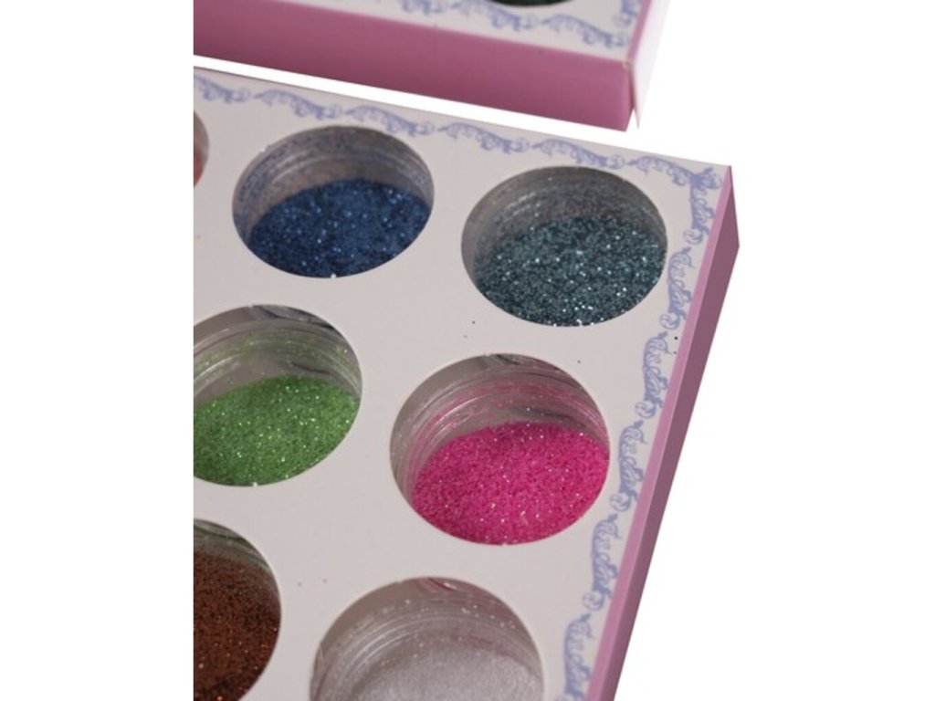 - průměr nádobky na třpytky: 2,5 cm