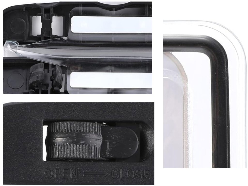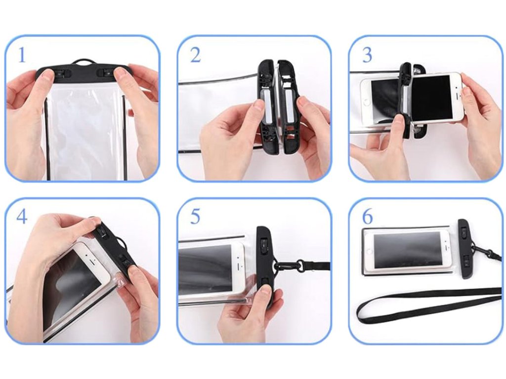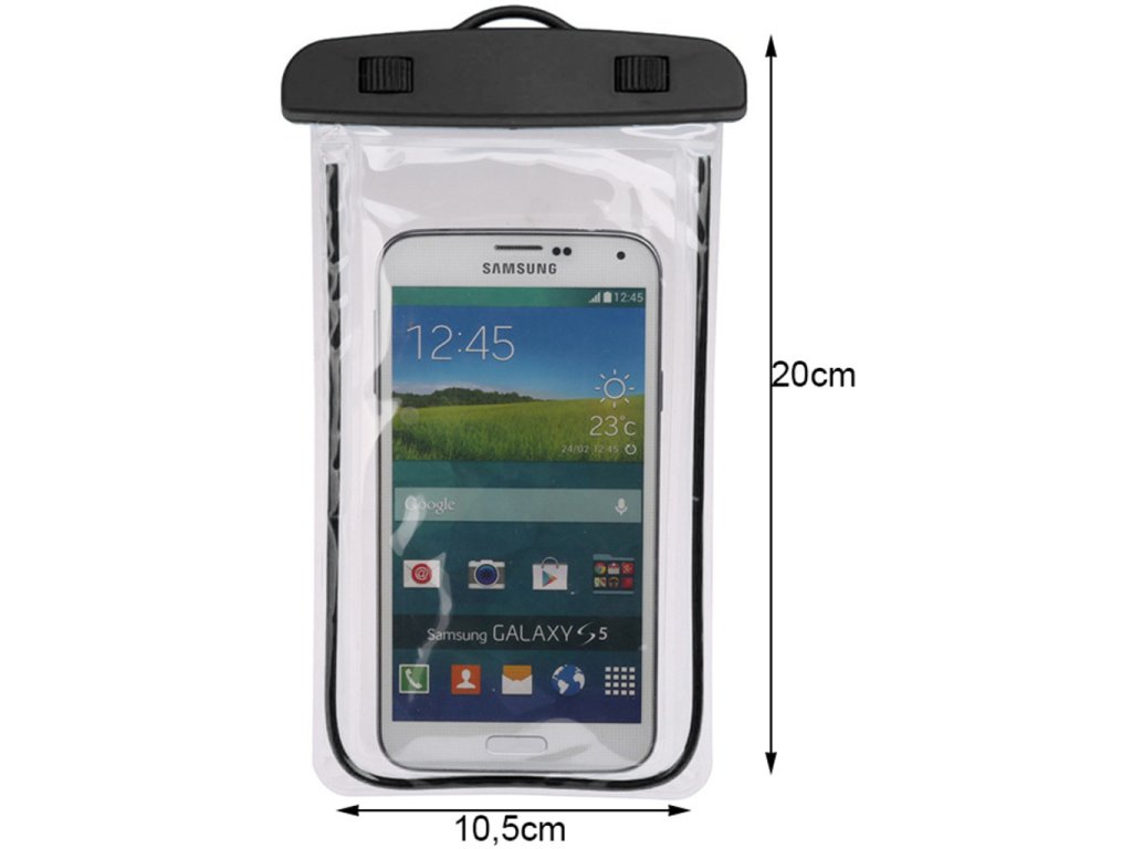 Voděodolné pouzdro na telefon, které dokonale ochrání váš smartphone před vodou, prachem a vlhkostí při běhu nebo jízdě na kole. Ideální pro bazén, pláž, plavání. Univerzální pouzdro je určeno pro smartphony s úhlopříčkou obrazovky až do maxima 6,5 palce. Je vybaven bezpečným a pohodlným uzamykacím systémem, který plně chrání telefon před vodou, špínou a poškozením. Možnost potápění do 10 metrů. Pouzdro je také vhodné k ochraně dokumentů, kreditních karet, peněz atd. Proti polití a vlhkosti. Má také integrované průhledné okno na obou stranách, přes které funguje dotyk. Bez problémů budete moci pod vodou textovat, mluvit po telefonu nebo fotografovat pod vodou.