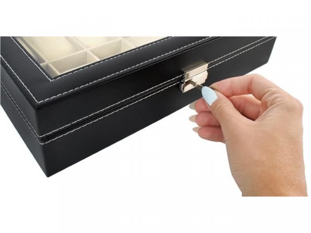 Patříte mezi vášnivé milovníky hodinek? Máte jich doma spoustu a rádi byste pro ně našli lepší místo, než je povalovat v šuplíku nebo skříňce? Tento praktická organizér na hodinky je ten pravý pomocník pro Vás. Organizér hodinek a brýlí má vnitřek vycpaný speciálním, velmi měkkým materiálem. Materiál chrání obsah pouzdra před poškrábáním. Prostory jsou od sebe odděleny vyššími stěnami, což chrání uložené příslušenství před nežádoucím kontaktem, který by mohl způsobit poškození. Krabice má také speciální stuhu, která podporuje otevřené víko. Víko také chrání interiér a obsah krabice. Proti náhodnému rozlití obsahu organizéru chrání také extrémně estetický a bezpečný uzávěr pomocí západky, která má navíc zámek, k sadě je připevněn klíč - umožňuje úplné uzavření a ochranu šperků. Šikovný a skladný organizér poskytuje prostor pro Vaši sbírku hodinek, které budou v bezpečí a nehrozí jim žádné poškození. Praktický organizér ocení každý, komu na své sbírce hodinek záleží. Organizér na hodinky je originální dárek do domácnosti.