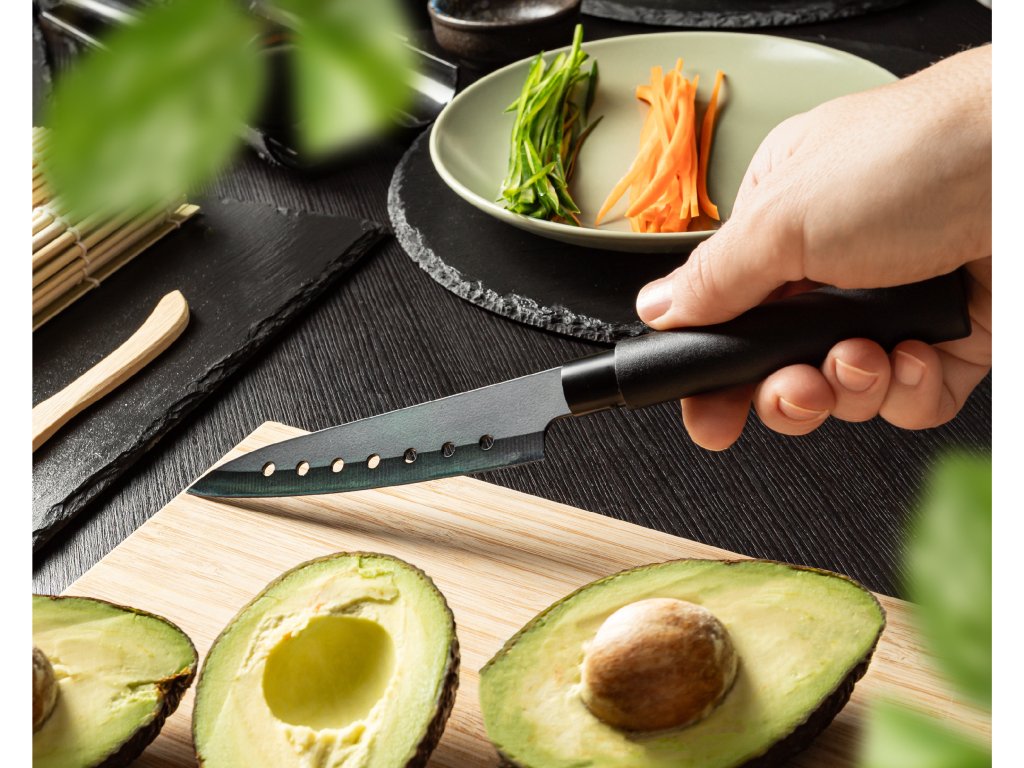 - 1 ks Ostrý japonský nůž – zajišťuje přesné řezání každého kousku a ingredience sushi.