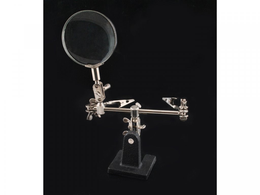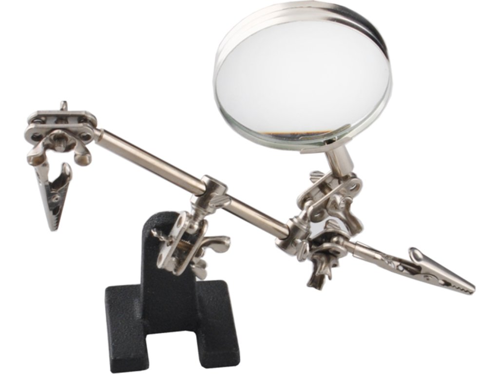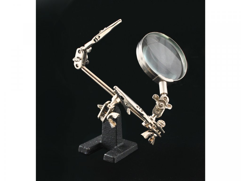 Při některých pracích si člověk říká, že by potřeboval mít ještě třetí ruku. Nic není nemožné. Představujeme Vám tento šikovný držák s lupou - třetí ruka. Tuto praktickou vychytávku uvítají především ti, kteří se věnují elektronickým a elektrotechnickým pracím. Souprava obsahuje lupu, stativ a držák, neboli třetí ruku. Díky lupě uvidíte i na ty nejmenší součástky a pomocí držáku si můžete přidržet další předměty. Držet lupu, opravovat a zároveň ještě přidržovat předmět může být obtížné. Díky této třetí ruce bude každá práce snadnější. Pokud opravujete například hodinky, šperky či jiné předměty, tuto věcičku uvítáte. Držák s lupou - třetí ruka je originální dárek pro usnadnění práce.