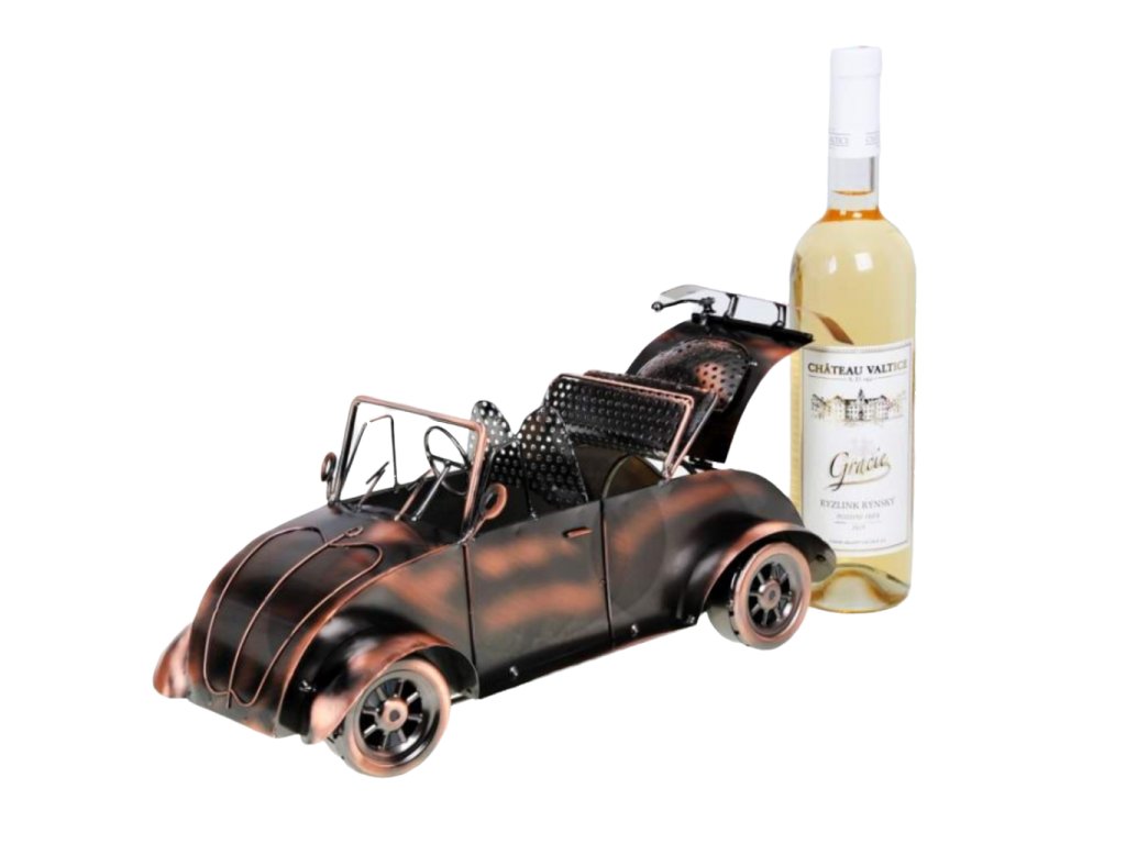Osvěžte svůj pokoj nevšedním stylovým Stojanem na víno - Kabriolet, který předvádí kreativitu v celé své kráse. Není nutné, aby láhev dobrého vína stála na stole jen tak obyčejně. Tento Stojan na víno - Kabriolet vyniká svým lákavým designem a motivem. Má přesvědčivý design spojený s ohromující metalovou barvou, které je těžké odolat. Položte ji na stůl a to jistě upoutá pozornost každého. Darujte jej spolu s vínem na večírcích a setkáních a buďte trendy pro ostatní. Můžete také darovat tento držák na lahve jen tak bez láhve vína a udělte radost svým blízkým. Nevšední a stylový stojan na jednu láhev vína v designu kabrioletu, který Vám osvěží interiér! Doporučujeme jako tematický dárek ke svátku, k narozeninám, k výročí nebo jako doplněk k dobrému vínu. Přineste tento stojan s vínem jako pozornost na večírek a budete pro ostatní trendy jako nikdo jiný. Radost udělá jak Vašim přátelům, tak i šéfovi.