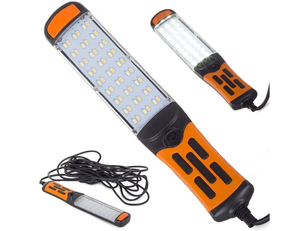 Dílenská lampa s magnetem a háčkem 60 LED COB pro kutily, vybavená 60 silnými LED diodami - nenahraditelná v dílnách a službách, garážích pro kutily, kempování, noční výlety, ve stanu nebo i při výměně kola! Vybaveno praktickým fyzickým vypínačem a 8-10 metrů dlouhým napájecím kabelem, který výrazně usnadňuje osvětlení pracovního prostoru mimo zásuvku! Lampa má také magnetický držák a otočný háček pro snadné použití oběma rukama.