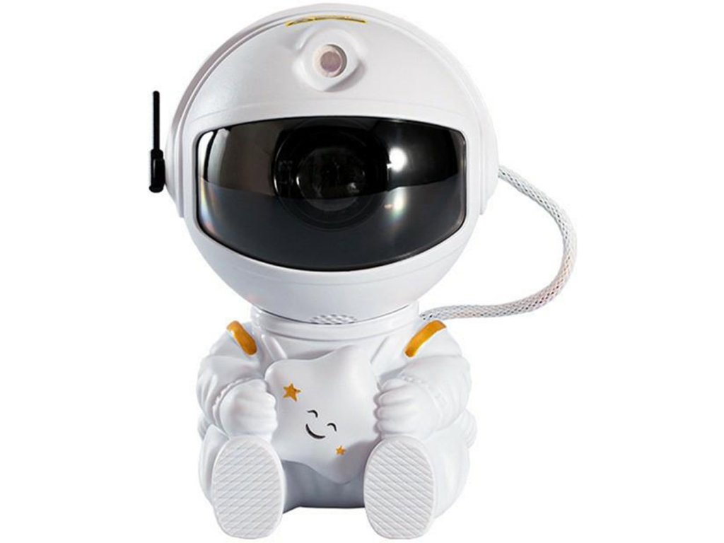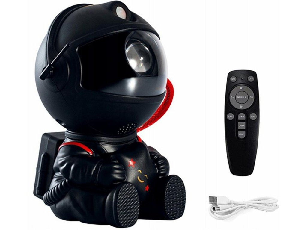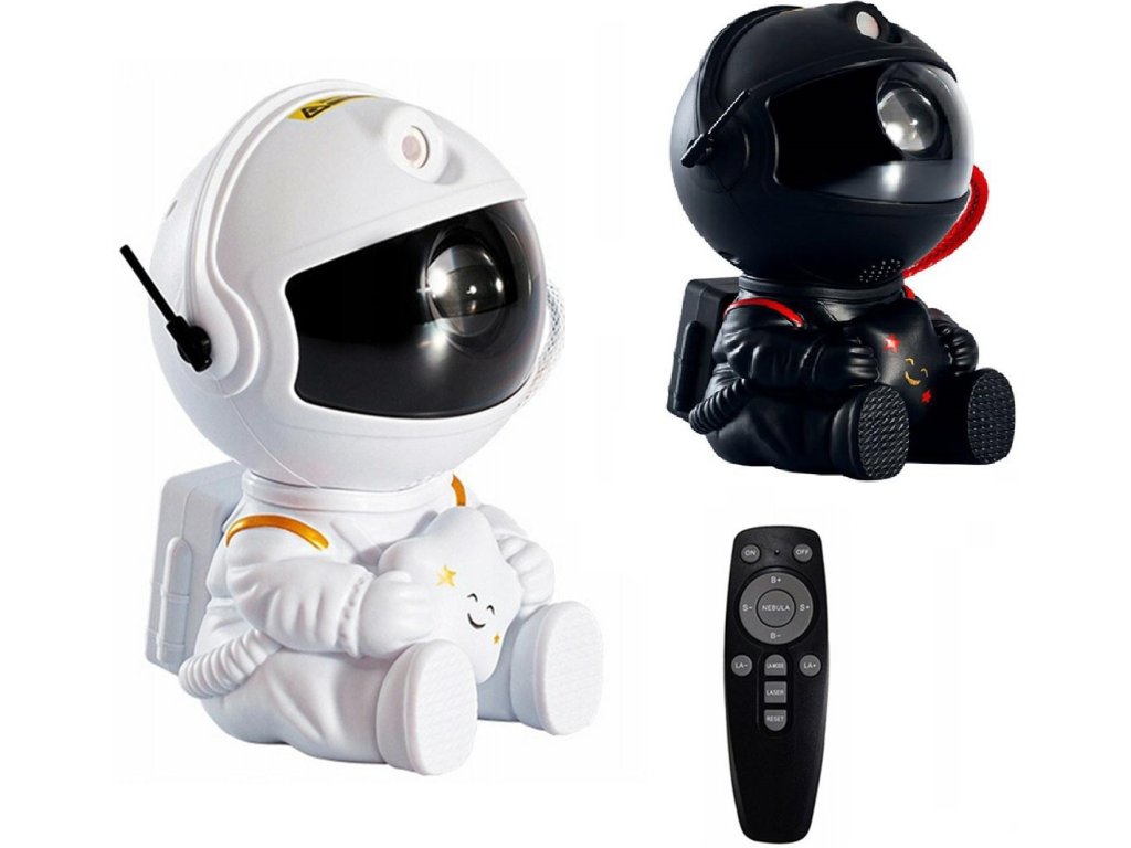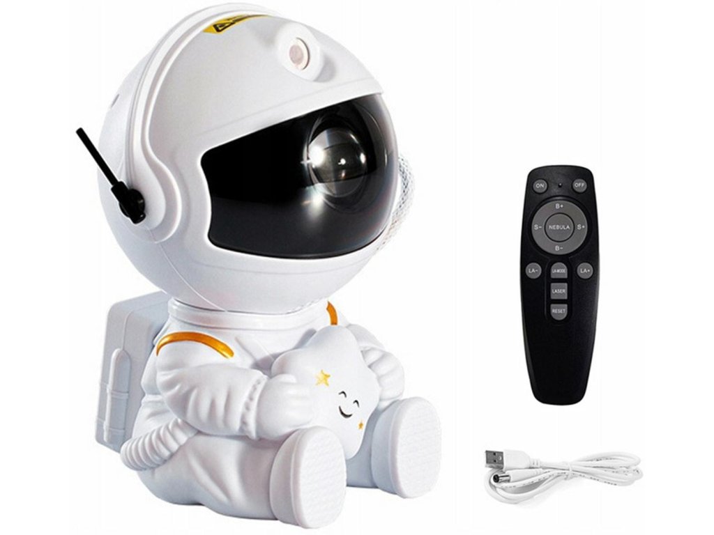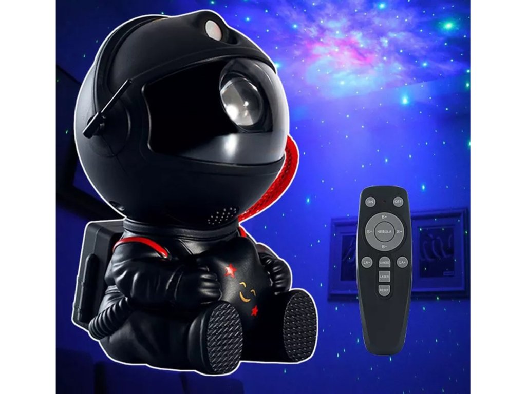 - Neobvyklý LED projektor hvězd ve tvaru sedícího astronauta s hvězdou v rukou.