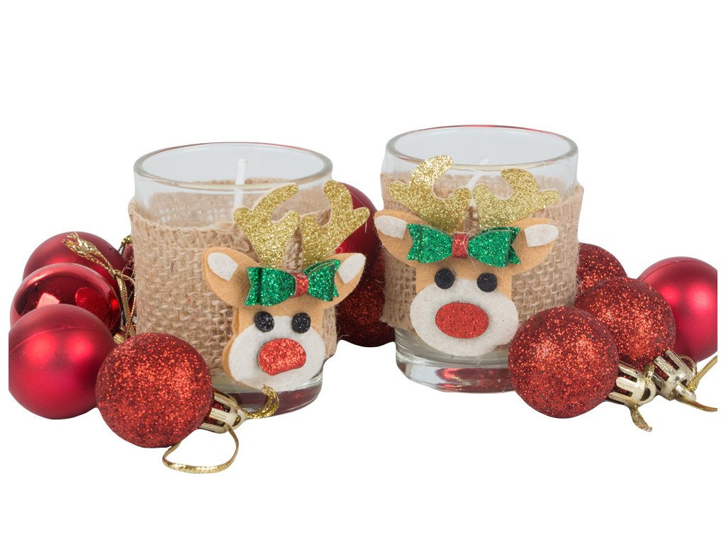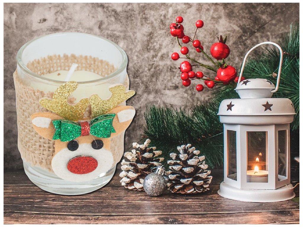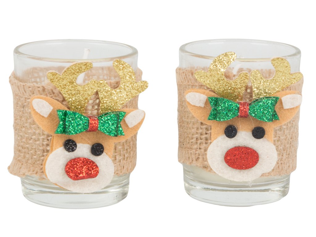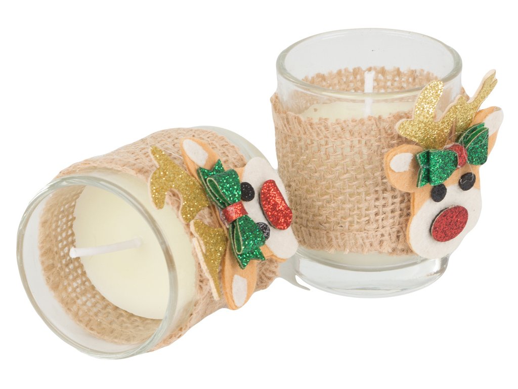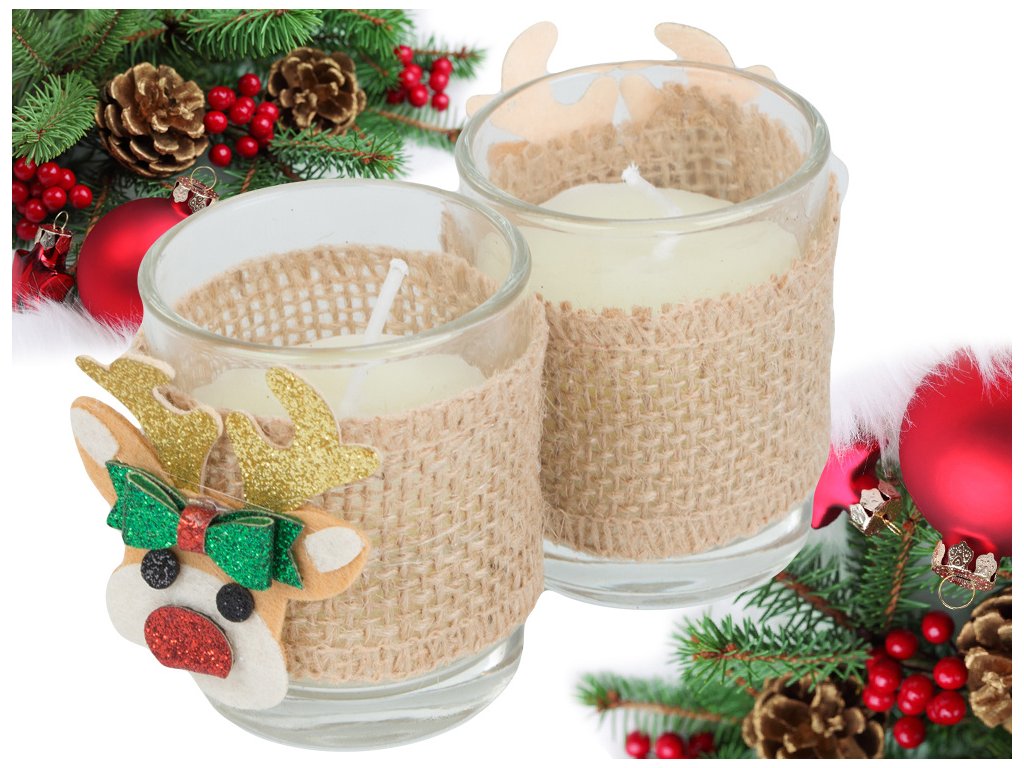 Vánoční dekorace - svíčky sob 2 ks jsou ideálním způsobem, jak přinést kouzlo Vánoc do vašeho domova. Tyto roztomilé svíčky s motivem soba jsou dokonalým doplňkem na vánoční stůl nebo poličku, vytvářející teplou a magickou atmosféru. Každá svíčka je umístěna v průhledném skle, ozdobena jutovou stuhou, zlatými rohy a červeným noskem, což jí dodává nádech vánočního kouzla. Skvěle se hodí i jako dárek pro vaše blízké. S našimi svíčkami si užijete pohodové chvíle plné relaxace a vánoční pohody.