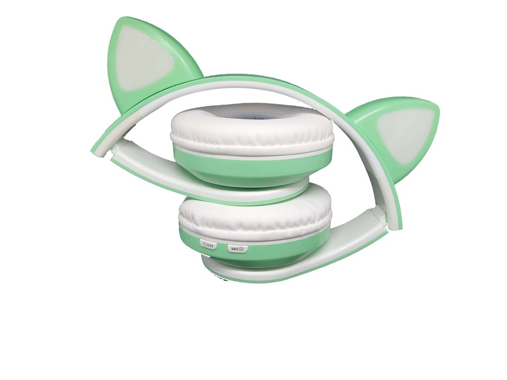 Bezdrátová sluchátka s kočičíma ušima - zelená